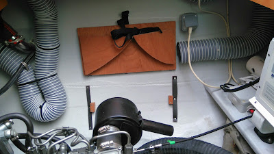 Depuis quelques temps, une idée trottait dans la tête du Cap: faire une installation ''fixe'' et arrêter la manutention... car bien entendu lorsque l'on en a besoin il fait gris voire il pleut des cordes. Donc le sortir de la cale, le mettre sur la pointe avant, le couvrir d'un taud en skay fabriqué sur mesure... devient parfois vite pénible.